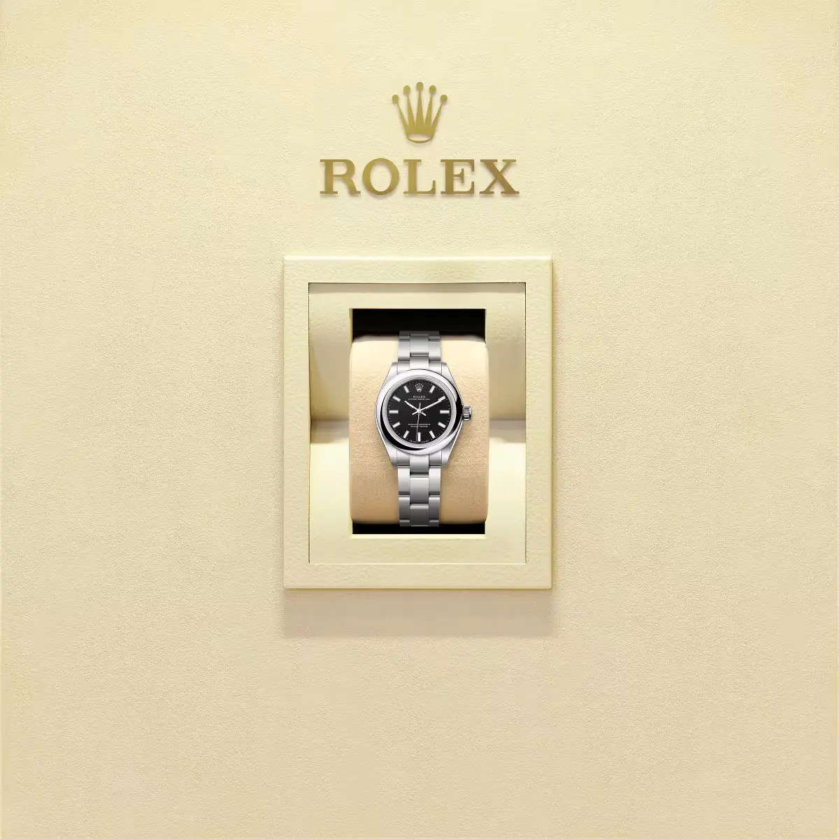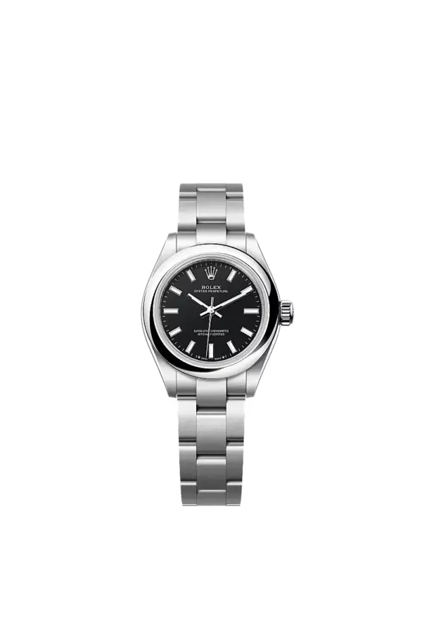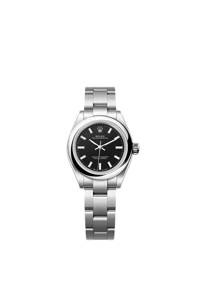 Oyster Perpetual 28 with black dial and Oyster bracelet .